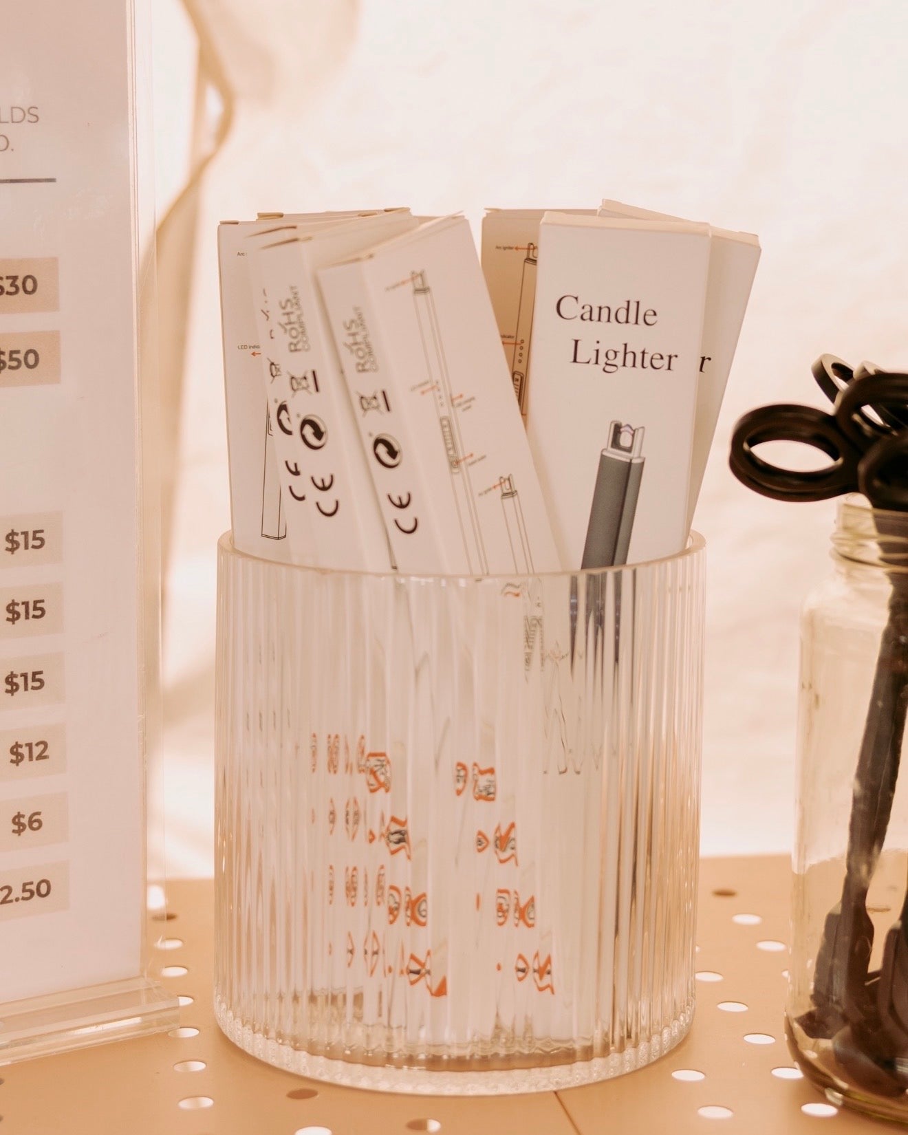 Just slide up the safety cover and hold the "light" button to activate the lighter. There's no flame, no fumes, and nothing messy, just an electric current perfect for starting up your wood-wicked candles.